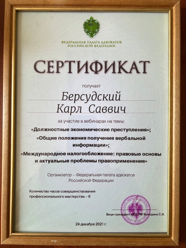 Подробнее о компании Адвокатский кабинет Берсудского К.С.